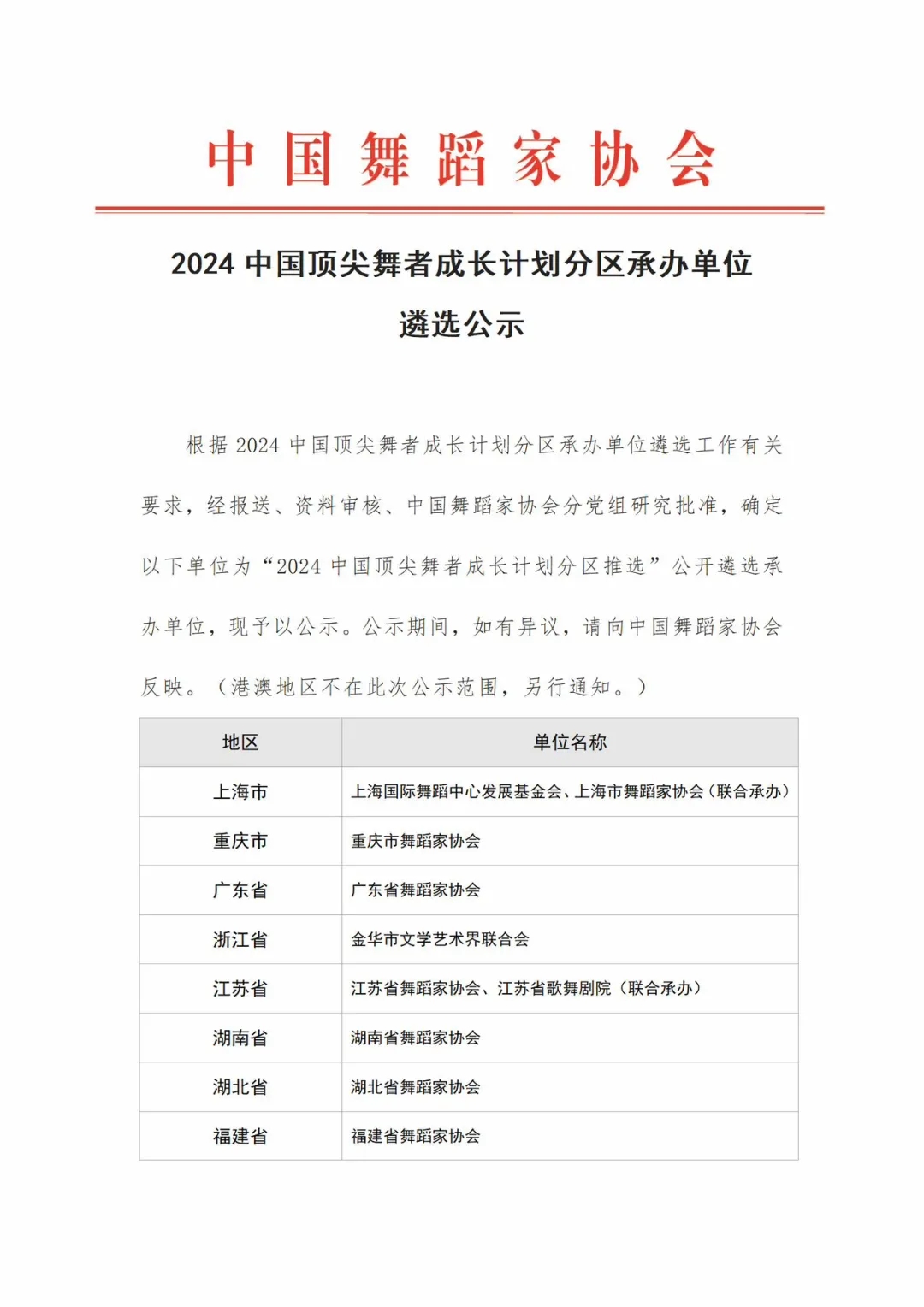 2024中国顶尖舞者成长计划分区承办单位遴选公示