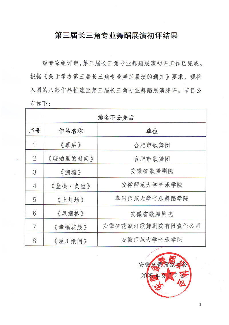 第三届长三角专业舞蹈展演初评结果