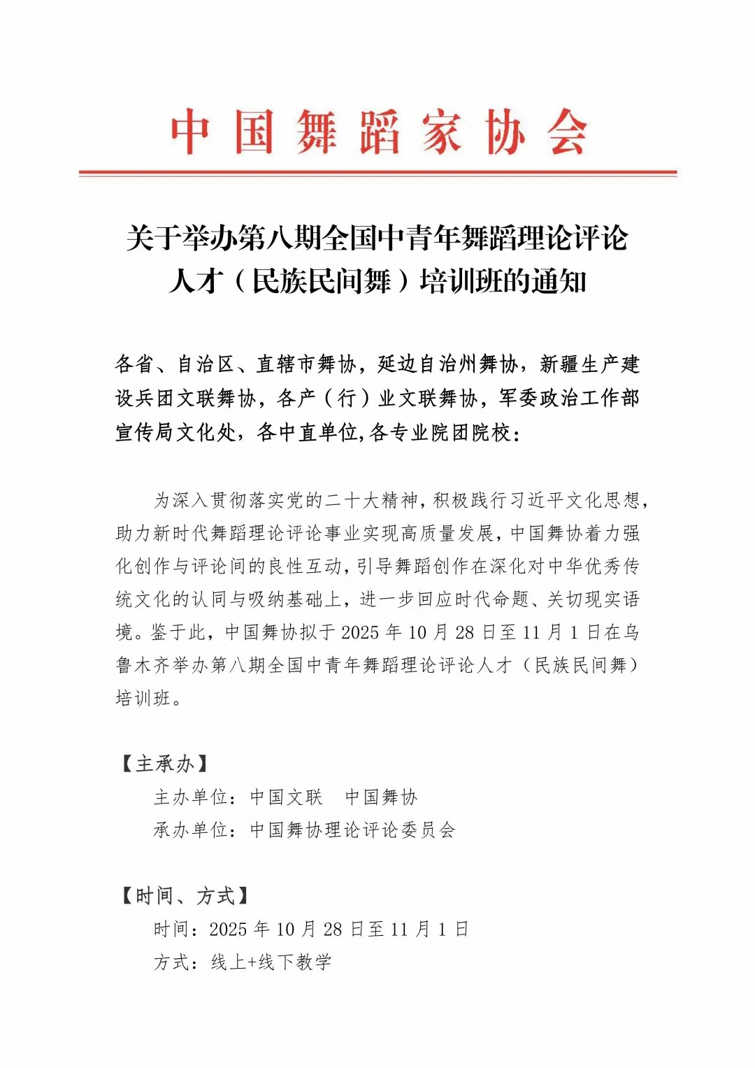 关于举办第八期全国中青年舞蹈理论评论人才(民族民间舞)培训班的通知