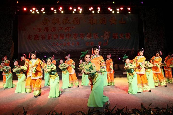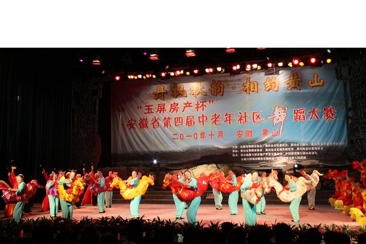 由安徽省舞蹈家协会、黄山市文化委员会、黄山市文学艺术界联合会主办的“丹枫迎秋·相约黄山”——《玉屏房产杯》安徽省第四届中老年社区舞蹈比赛活动于2010年10月29日在黄山市落下帷幕。