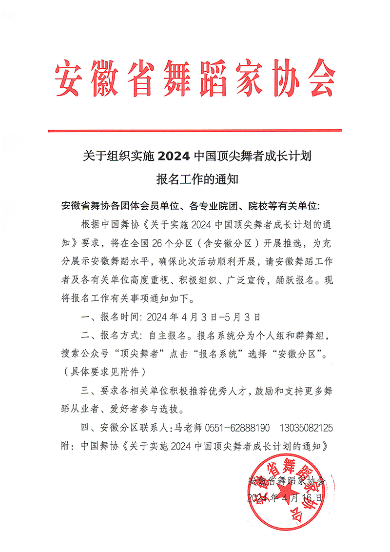 关于组织实施2024中国顶尖舞者成长计划报名工作的通知