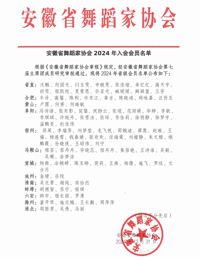 安徽省舞蹈家协会2024年入会会员名单