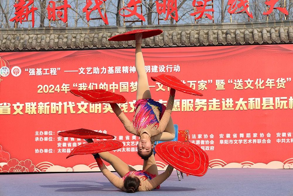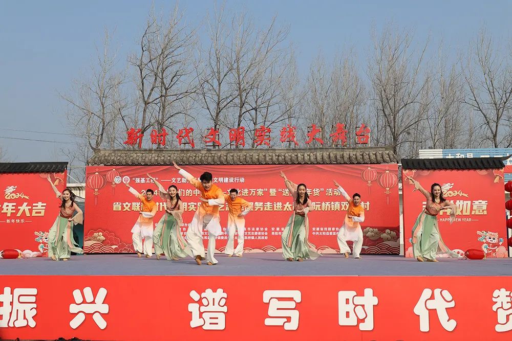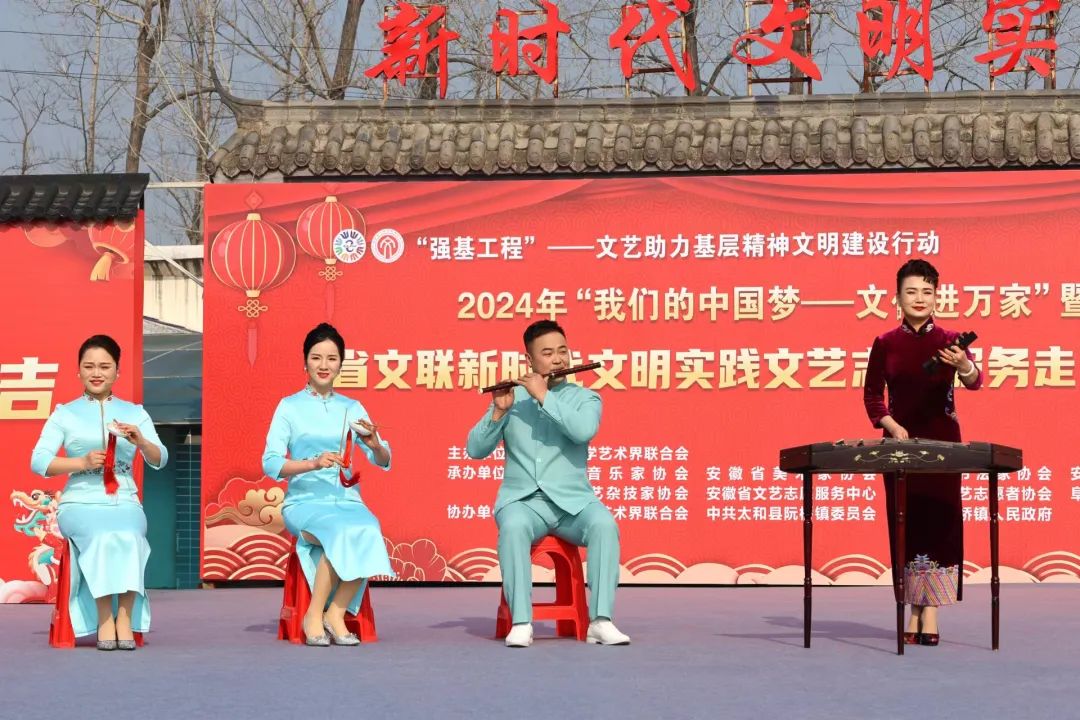 为深入学习贯彻习近平文化思想,扎实推进“强基工程”——文艺助力基层精神文明建设行动和“文艺进万家 健康你我他”新时代文明实践文艺志愿服务,营造浓厚新春氛围,助力乡村文化振兴,1月12日,省文联党组成员、副主席、书记处书记林勇率文艺小分队来到太和县阮桥镇双王村,开展文艺志愿服务活动。由此也拉开了省文联2024年“我们的中国梦——文化进万家”暨“送文化年货”活动的帷幕。中国曲协副主席、省文联副主席、省曲协主席、中国曲艺“牡丹奖”获得者孟影,省级相关文艺家协会负责人参加活动。