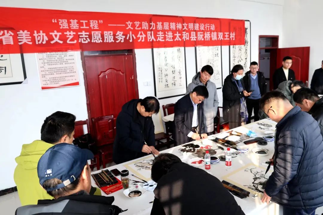 活动中,在双王村委会门口和书画活动室,来自省美协的小分队成员对当地美术工作者、美术爱好者作品进行了辅导点评,并现场创作了一批美术作品赠送给村委会。省摄协专门组织摄影工作者为当地群众拍摄并制作了“全家福”照片。来自省书协的小分队成员挥毫泼墨,倾情挥洒,创作出一幅幅春联和“福”字,给村里增添了一份浓郁喜庆的新春气息。