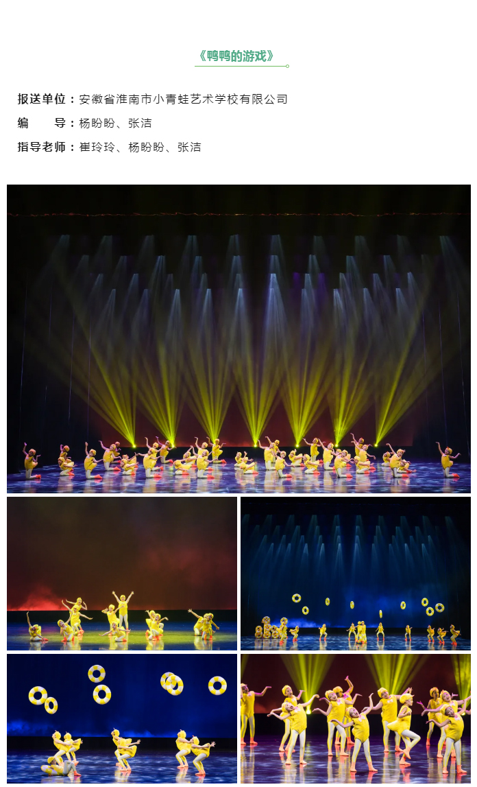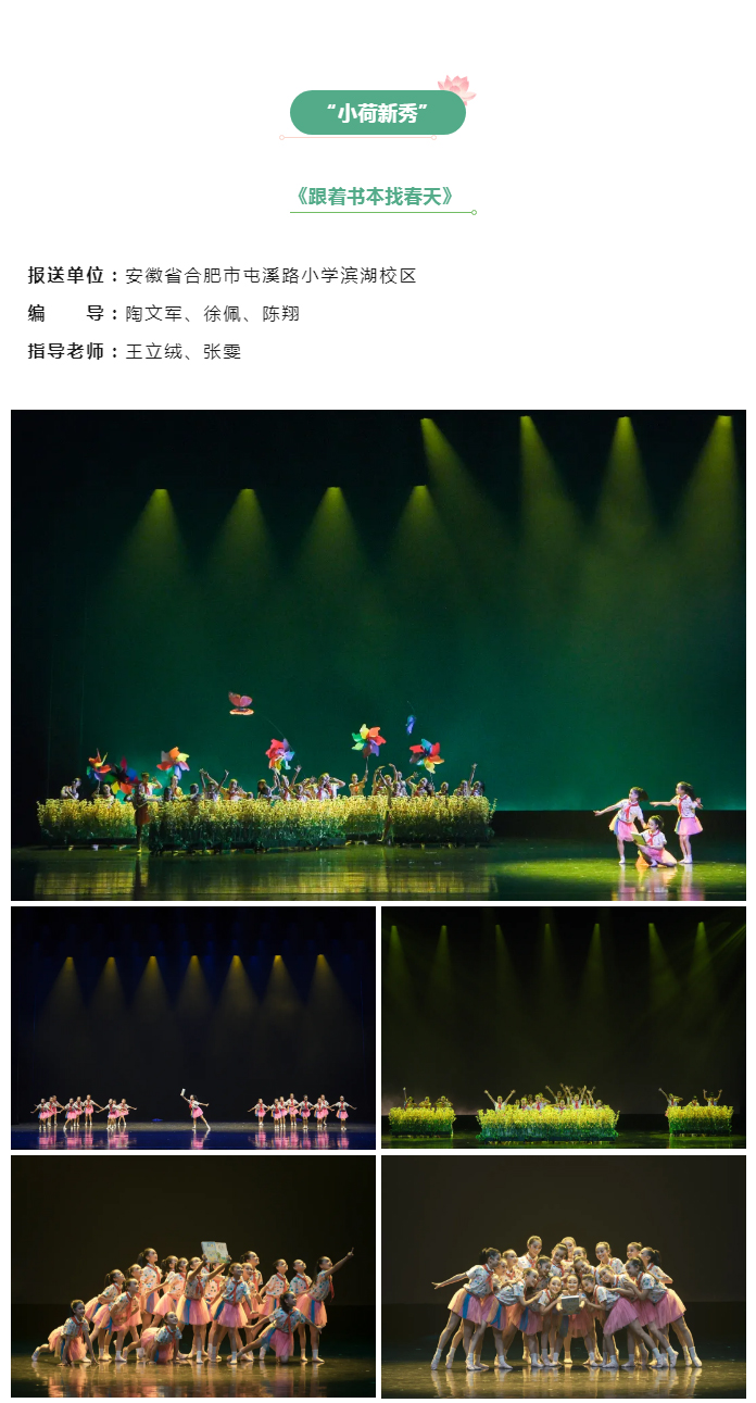 此次展演共有来自全国各地近170部作品入选,其中,由安徽省舞协报送的4部少儿舞蹈作品入选本次展演。经过激烈角逐,《可乐不可乐》荣获“小荷之星”荣誉称号,《跟着书本找春天》《我也是小兰花》《鸭鸭的游戏》荣获“小荷新秀”荣誉称号。
