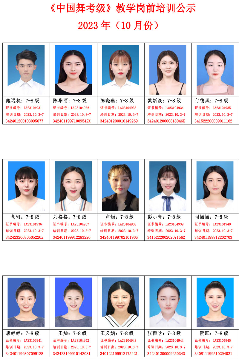 2023年10月教学岗前培训班公示