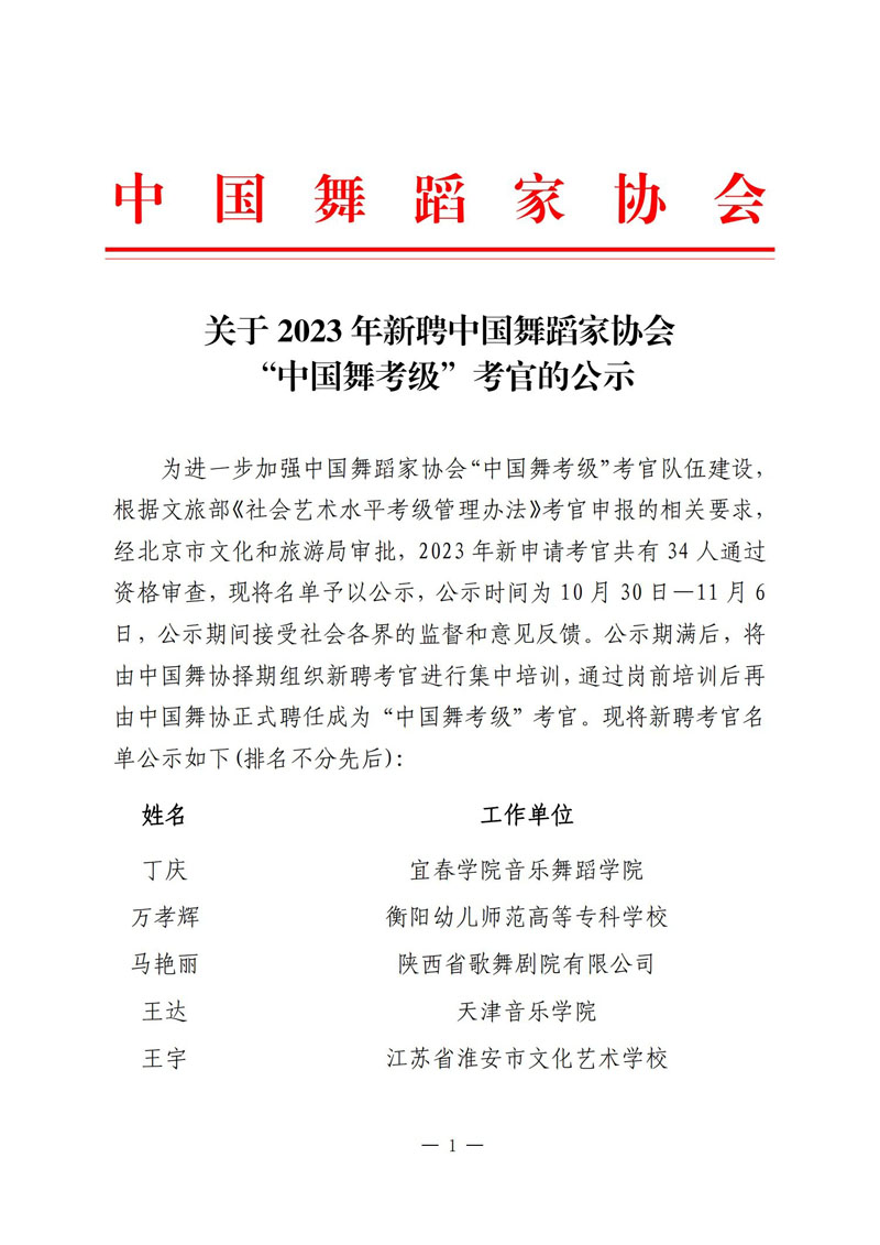 关于2023年新聘中国舞蹈家协会“中国舞考级”考官的公示
