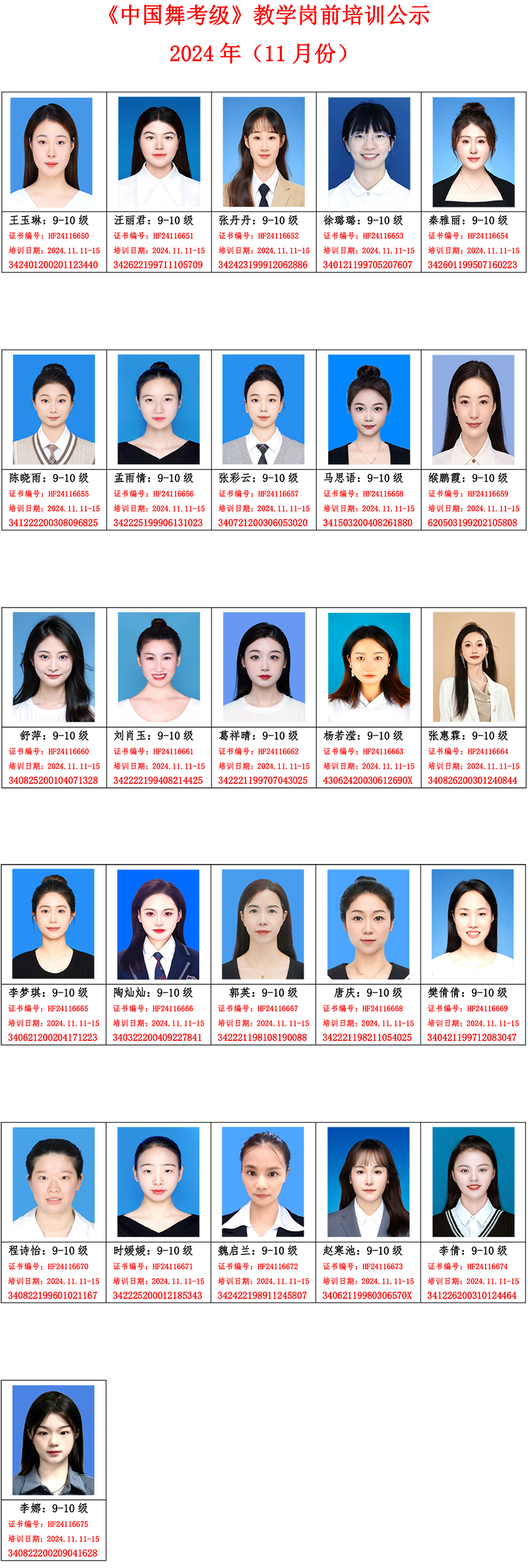 2024年11月教学岗前培训班公示