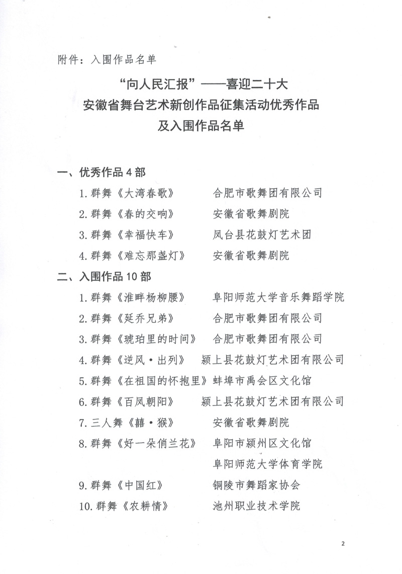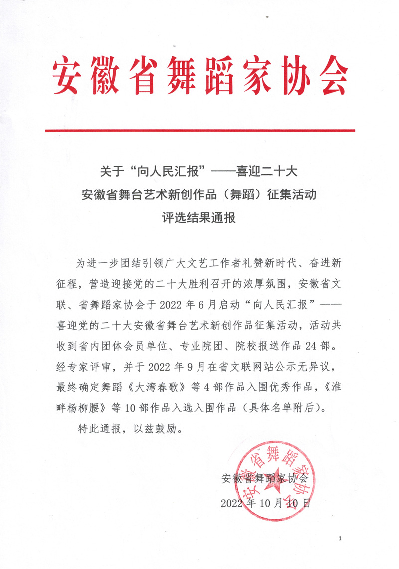 “向人民汇报”舞蹈新创作品评选结果通报