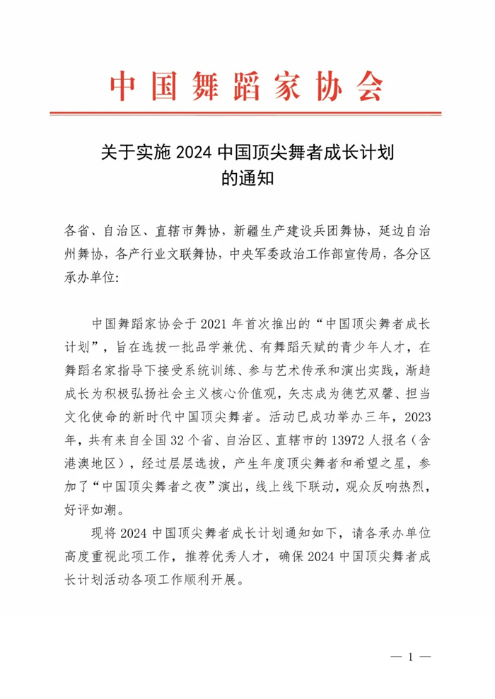 关于实施2024中国顶尖舞者成长计划的通知
