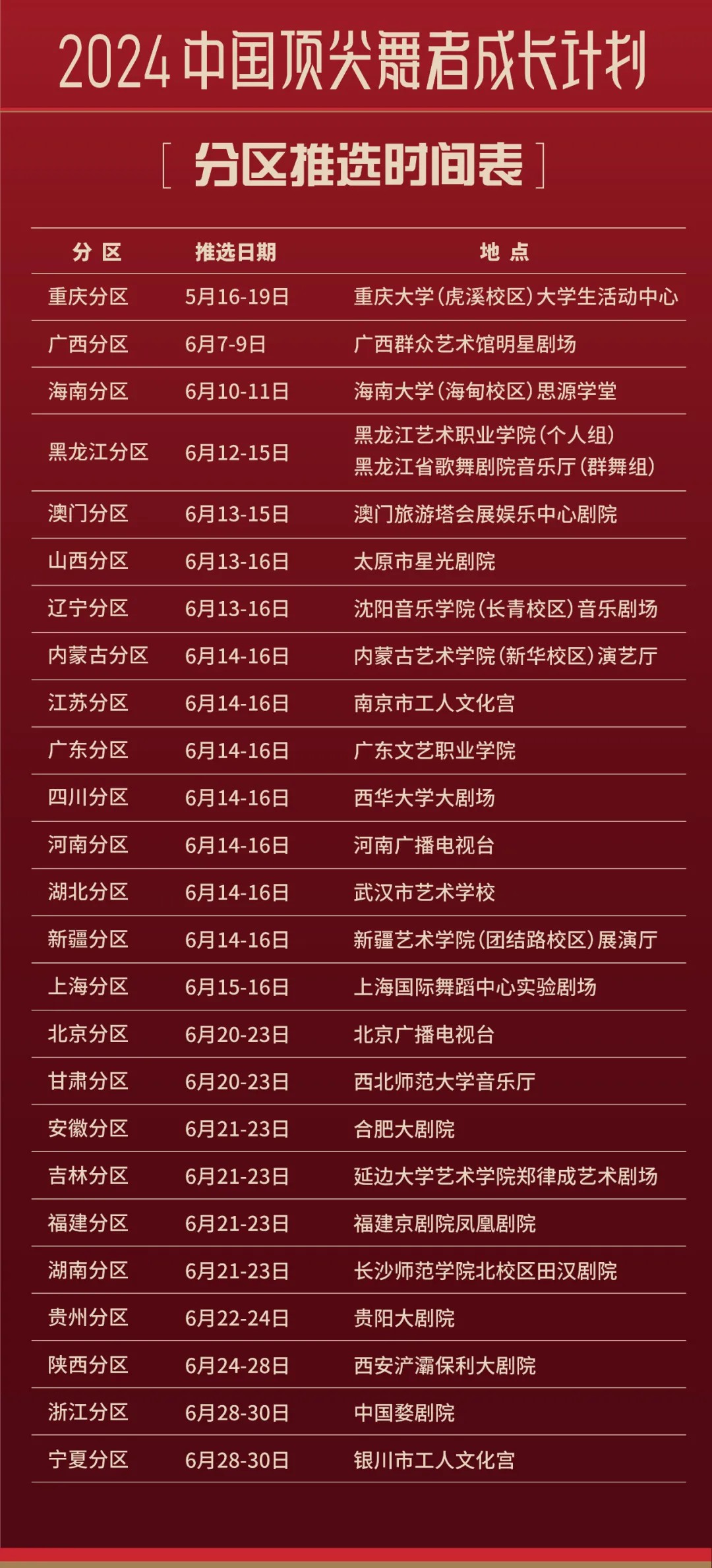 针对“2024中国顶尖舞者成长计划”,组委会已组织专家组对报送视频进行评审,并据此确定了晋级名单。晋级选手需根据自选分区,参加5月至6月的分区推选环节。参与成长计划的所有学员请注意查收手机短信和电话通知。