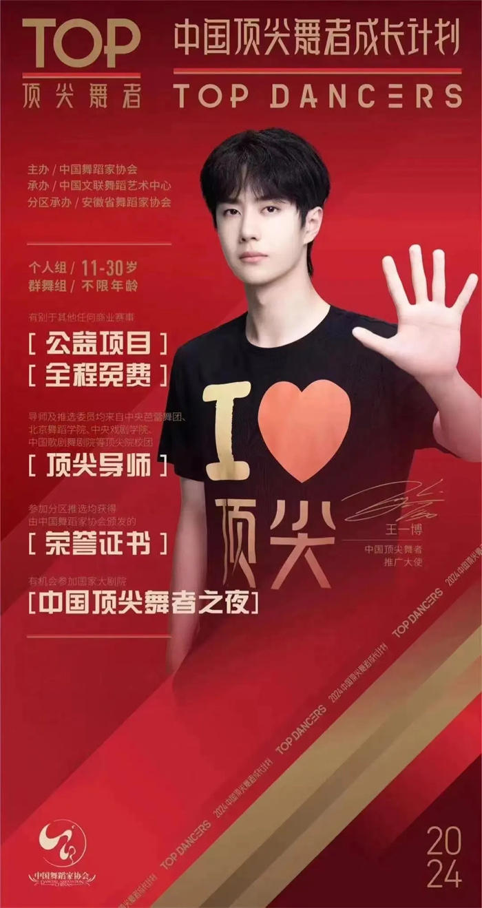 “顶尖舞者”是由中国舞蹈家协会、中国文联舞蹈艺术中心鼎力打造的最具权威性、专业性的国家级品牌。自2018年创立,得到了中宣部、中国文联的大力支持。顶尖舞者品牌矩阵包含中国顶尖舞者成长计划、顶尖舞者进校园、顶尖教师巡回课堂、顶尖舞者海外巡演、中国顶尖舞者之夜等五大子品牌。