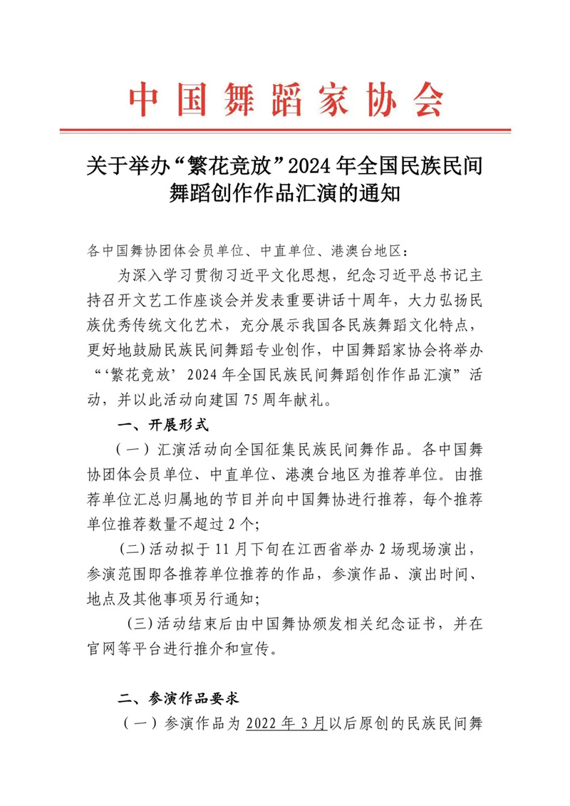 附件2:关于组织参加“繁花竞放”2024年全国民族民间舞蹈创作作品汇演的通知
