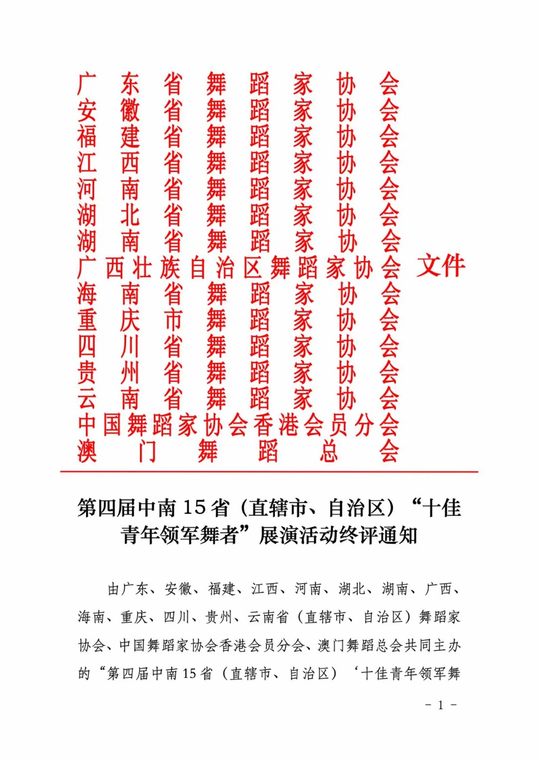 【活动通知】第四届中南15省(直辖市、自治区)“十佳青年领军舞者”展演活动终评通知