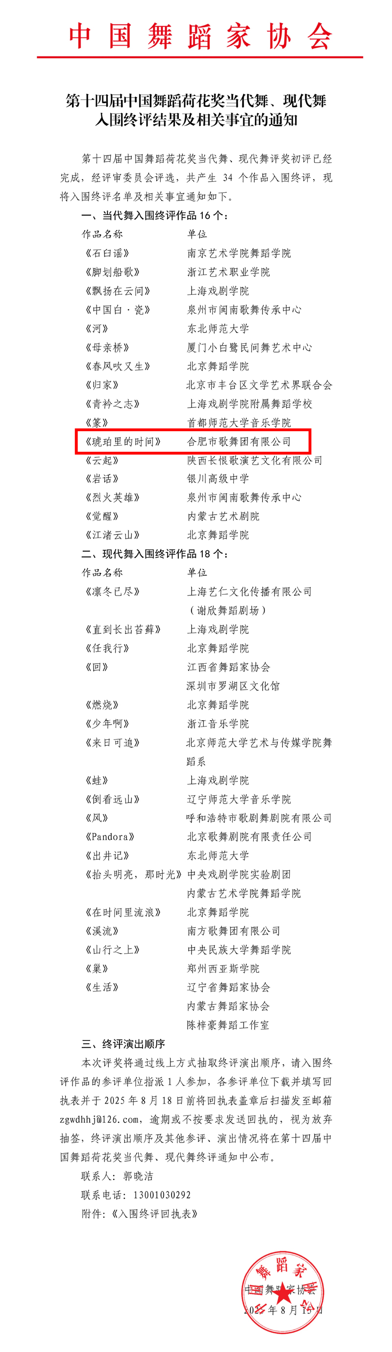 恭喜我省作品《琥珀里的时间》入围第十四届中国舞蹈荷花奖当代舞终评!
