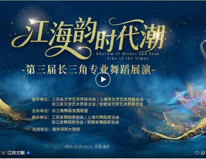 为深入学习贯彻习近平文化思想,助力长三角一体化发展,推动长三角地区舞蹈事业不断交流融合,日前,由长三角舞蹈发展联盟主办,江苏省舞协、上海市舞协、浙江省舞协、安徽省舞协联合承办的第三届长三角专业舞蹈展演在南京成功举办。