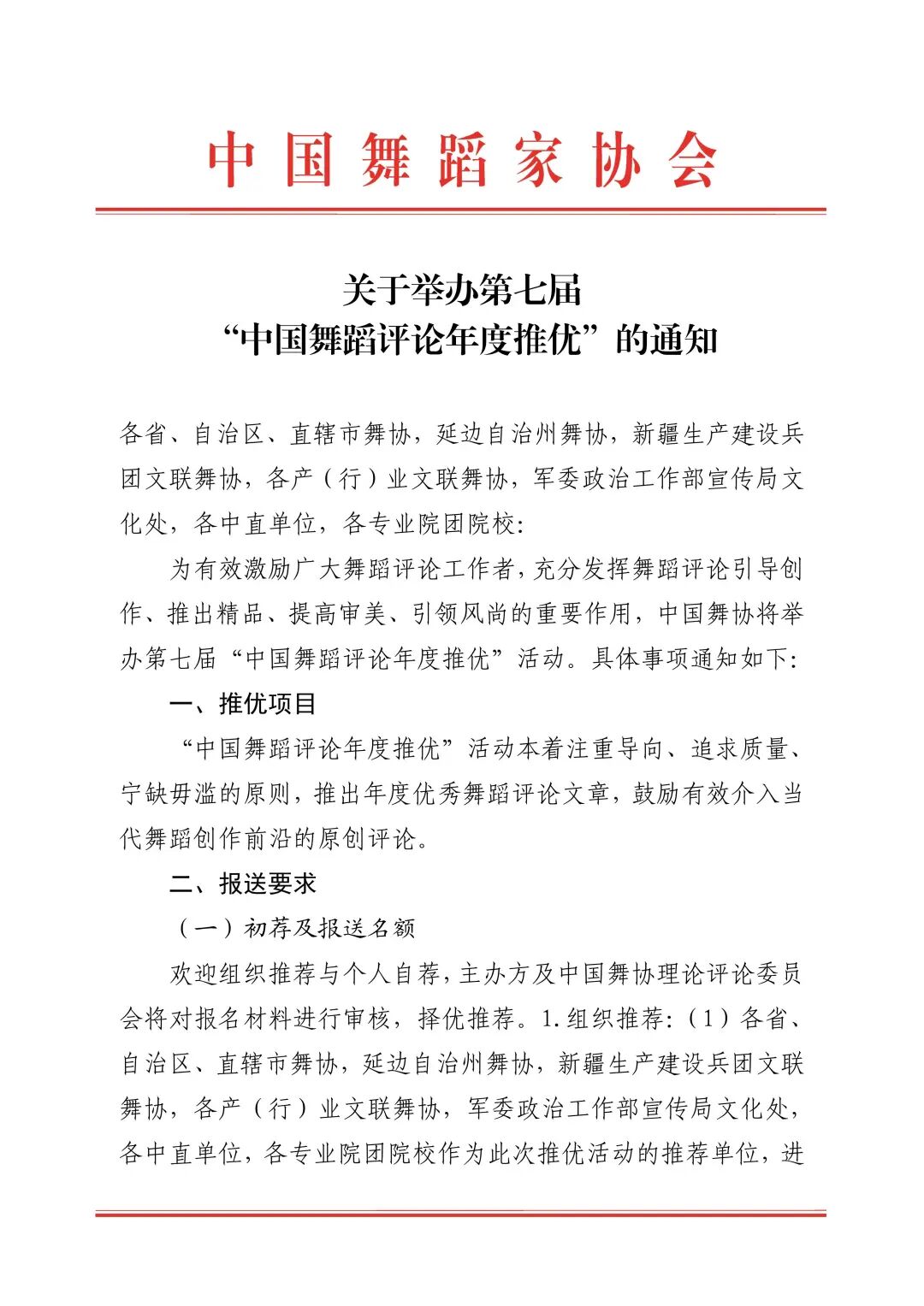 关于举办第七届“中国舞蹈评论年度推优”的通知