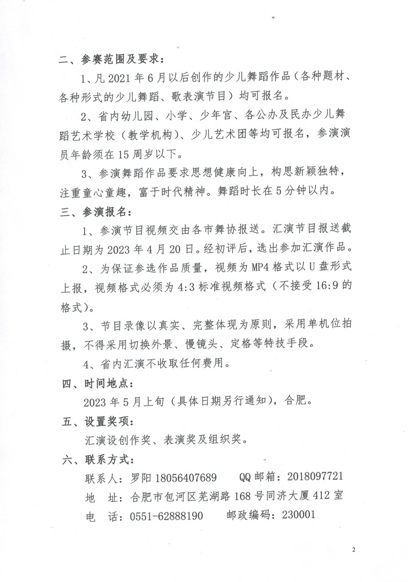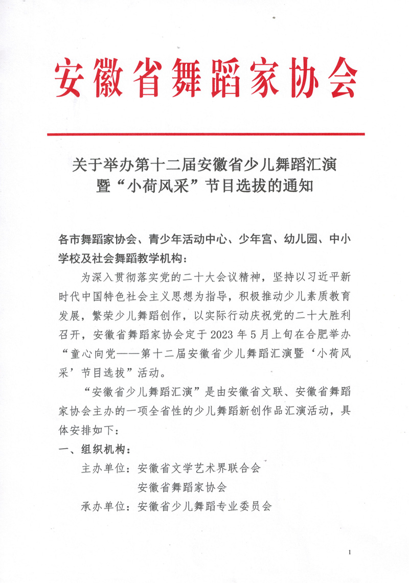 关于举办第十二届安徽省少儿舞蹈汇演暨“小荷风采”节目选拔的通知