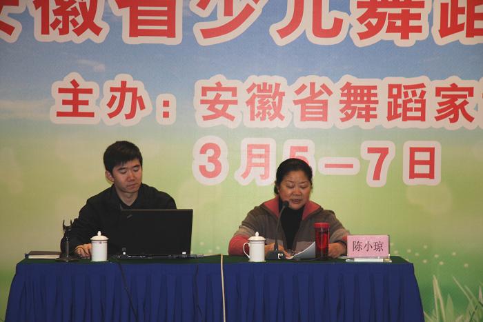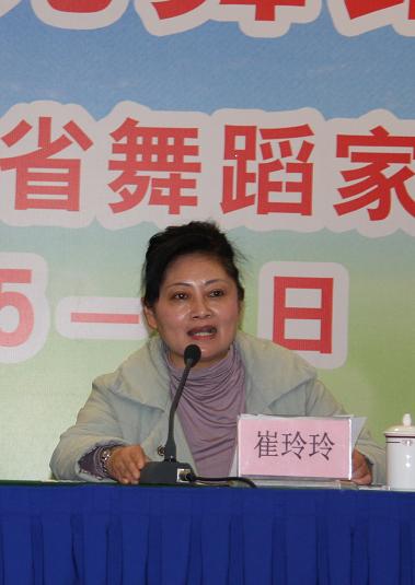 安徽舞协副主席崔玲玲介绍新创舞蹈《逛超市》。