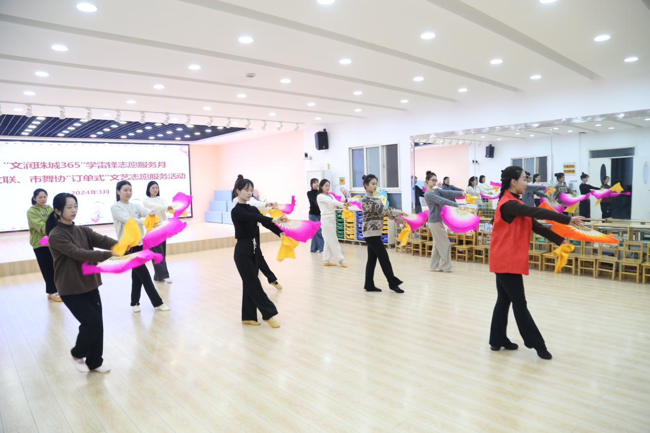2024年3月20日,“文润珠城365”学雷锋志愿服务月——蚌埠文联、市舞协“订单式”文艺志愿服务活动,在蚌山幼儿园教育集团举行。市舞蹈家协会志愿者为蚌山幼儿园的教师们带来了花鼓灯舞蹈教学公益课程。